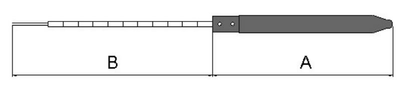 Esta ponta normalmente é fabricada com 8″ de comprimento (standard), podendo, no entanto, ser feito com até 30″. Após este comprimento o fio termopar segue até o instrumento dentro de isoladores cerâmicos e de fibra de vidro protegido por um tubo de aço inox em forma de lança. Ponta padrão de reposição