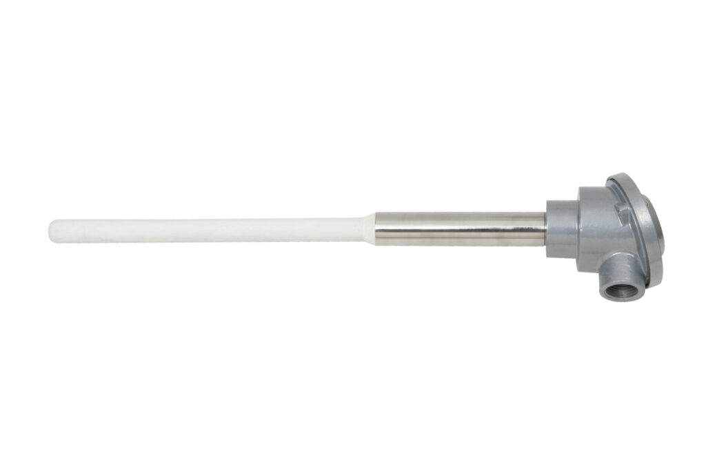 Mod.: EX-SCIM-S-710-24-EE : Termopar tipo S (PtPtRh10%), elemento simples, tubo cerâmico tipo alsint 710 (99,7% alumina) diâm. 24x19mm, com tubo interno alsint 710 (99,7% alumina) diâm. 15x11mm e capilar inteiriço diâm. 8.5mm em alsint 710 (99,7% alumina), luva em aço inox diâm. 33x100mm – cabeçote de alumínio com tampa basculante, conduite = ½” com prensa-cabo – indicar comprimento do tubo cerâmico em mm.
