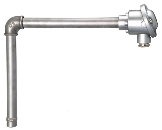 OPCIONAIS Termopar mineral tipo K – junta quente isolada – bainha interna inox 310 – tubo horizontal em ferro preto diâm. 21.3x500mm, cotovelo 90º em ferro 1/2×1/2” BSP – tubo vertical (imersão) em ferro armco diâm. 21,3x 4.5x500mm com cabeçote alumínio com tampa parafusada, conduite = ½” BSP com prensa-cabo com certificado de calibração em 03 pontos (indicá-los) – Precisão +/- 0,75% ou +/- 2,2ºC – conforme norma ASTM-E-230 – sensor para atuar até 1000ºC (indicamos até 980ºC) –