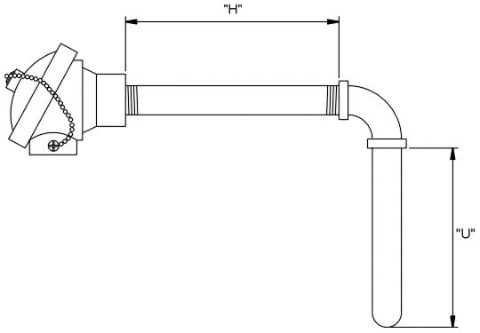 Tubo externo em inox 310 ø 21,3 x 600mm, rosca de fixação 3/4″ NPT em inox, com cabeçote a prova de tempo.